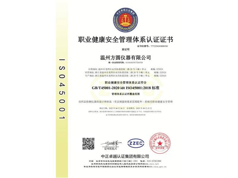 職業(yè)健康安全管理體系認證證書